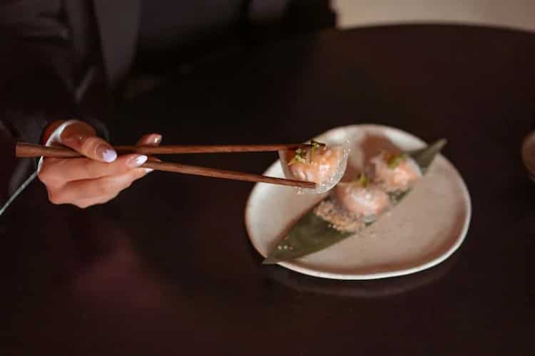 Siu mai uses a thin, elastic wrapper shaped into an open-top cylinder that holds its structure during steaming. The open design allows steam to rise directly through the centre, giving the filling a warm, even finish while keeping the exterior tender. Unlike fully enclosed dumplings, siu mai balance moisture in a way that keeps them warm without becoming heavy. They are also steamed in bamboo baskets to maintain their structure and prevent condensation from pooling at the base.