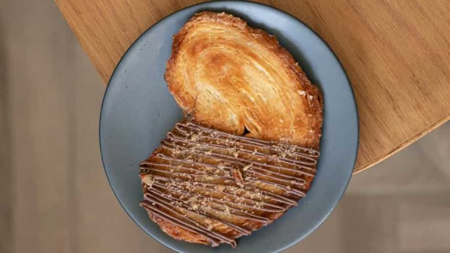 The Odisha layered pastry is deliciously flaky when brushed with ghee between the rolled out layers, and attains a golden, crisp texture that is retained even after being dunked into sugar syrup. When one end of the khaja is dipped in melted dark chocolate, it gives the impression of a decadent French breakfast pastry a la palmier. Finish off the preparation with a sprinkle of Maldon sea salt flakes to highlight a hint of savouriness and balance the sweetness.