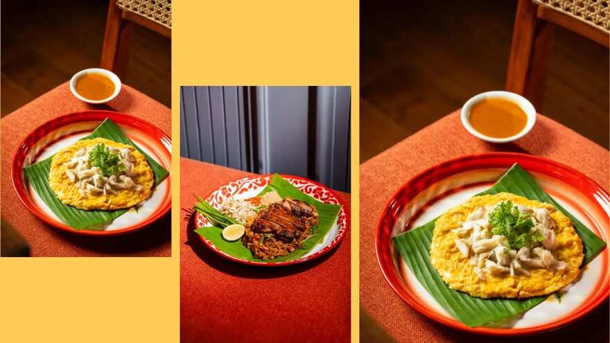 Despite the deft movements of our forks between floral-printed enamel plates or the swapping out for our fingers, each of our starters was delicious and distinct. The chunks of charred chicken dunked into the mix of the accompanying peanut sauce and the sweet chilli cucumber ajar was a delightful dance of savoury, sweet, spicy and smoky. The sausages tucked into a raw cabbage leaf, along with garlic pods and sliced fresh Thai bird’s eye chilli, was a punchy, pungent and pickly bite. In this house, we’re fans of fried chicken, and these wings didn’t disappoint, crispy, juicy, with the spike of spicy and tangy from the accompanying sauces. But the crabmeat omelette won this round: a wonderfully fluffy omelette topped with a cluster of sweet crabmeat. It is absolutely tasty. Then, go on, drizzle on the tom yum-makroot lime reduction to elevate it into a savoury, luscious mouthful.