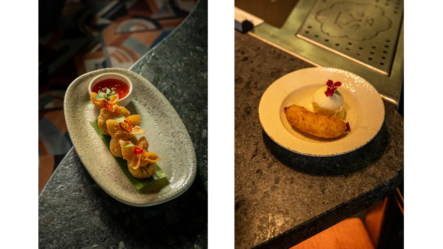 Since we’re flying, might as well commit; we ask for 3 Acts of Citrus. The tart of the marmalade two-steps with the spike of the green lime brilliantly while the whisky seals the deal. We’re glad for our additional order of the bacon skewers and a zesty lamb massaman curry that was the much needed soothing warmth that hit the spot. We call it a night with panko-fried bananas with vanilla ice-cream…a delightful dance of textures and temperatures. And we’re sent off with a complimentary cup of chicken soup; it is indeed, we can attest, good for the soul.