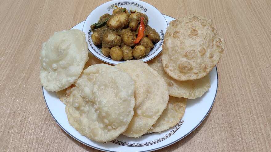 Charchari is a dry vegetable preparation made with seasonal vegetables like radish, brinjal, and pumpkin, cooked with mustard oil, turmeric, and green chillies. Chhanar Dalna is a curry made from homemade cottage cheese (chhena), shaped into small balls or cubes and cooked in a light tomato and ginger gravy. Kumro Chechki is a simple stir-fry made with pumpkin, mustard oil, turmeric, and green chillies, where the natural sweetness of the pumpkin shines through. Heenger Kochuri is a unique Bengali kachori flavoured with asafoetida (hing), filled with urad dal or spiced mashed potatoes.