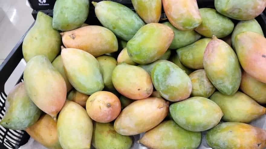Totapuri stands out because of its shape, as it has a pointed tip, almost like a parrot’s beak, hence the name totapuri. Grown widely in Karnataka, Andhra Pradesh, and Tamil Nadu, this mango is different from the dessert varieties. It is less sweet and a bit tangy, which makes it perfect to use for pickles, juices, and salads. The flesh is firm and holds its shape nicely when sliced. If you like mangoes that are not too sweet, Totapuri is a refreshing change. It’s also typically used in processed products because of its strong structure and flavour.