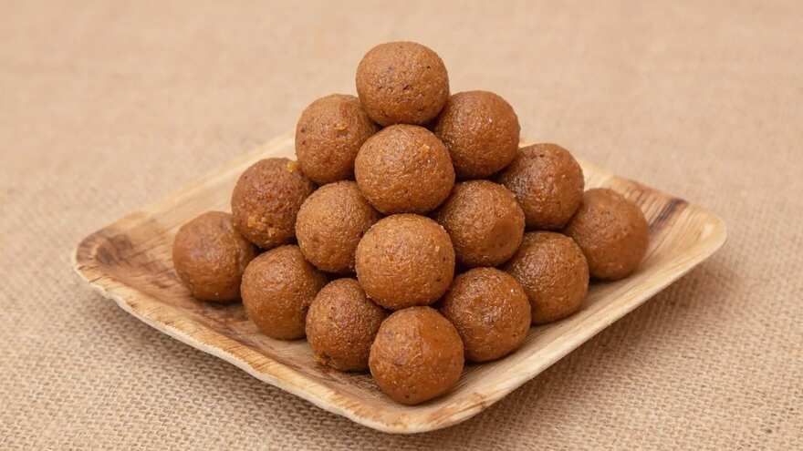 - While still warm, take portions and shape into round laddus. If too dry, add a little warm ghee.
