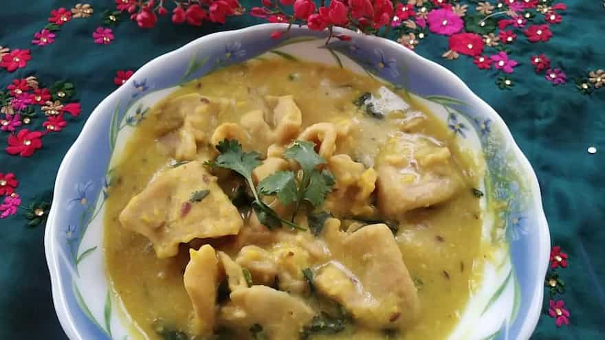 Also fondly known as ‘dal ki dulhan’, dal pithi is Bihar’s answer to satisfying one-pot comfort food. To make this, small wheat flour dumplings are shaped by hand and boiled directly in a pot of slow-cooked toor dal, which allows them to absorb every bit of the spicy, garlicky flavour. The result is a hearty dish with a smooth texture and rural fragrance that feels like a warm hug in a bowl. Finished with a spoonful of ghee and a cumin seeds tadka, dal pithi is a wholesome, nourishing dish representing the true meaning of simplicity meeting satisfaction.
