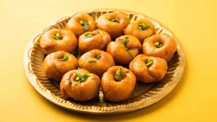 Hailing from the Rajauli region of Bihar, balushahi is a crispy, syrup-soaked sweet which is soft and flaky from inside and crispy from outside, delivering a melt-in-the-mouth experience. Prepared with ghee-rich maida dough, fried slowly over a low flame, and then soaked in cardamom-scented sugar syrup, it captures festivity, luxury, and the unmistakable aroma of a Bihari kitchen all in one. The secret is in the slow frying, which gives balushahi its soft layers and signature crispiness, making it a classic treat for every celebration.