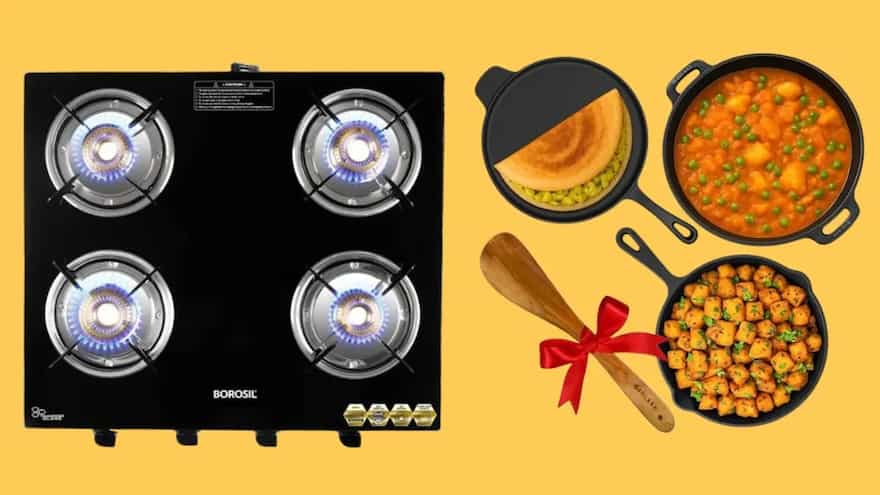 - Borosil Flare Glass-Top Gas Stoves (2–4 burners) begin at ₹3,294.