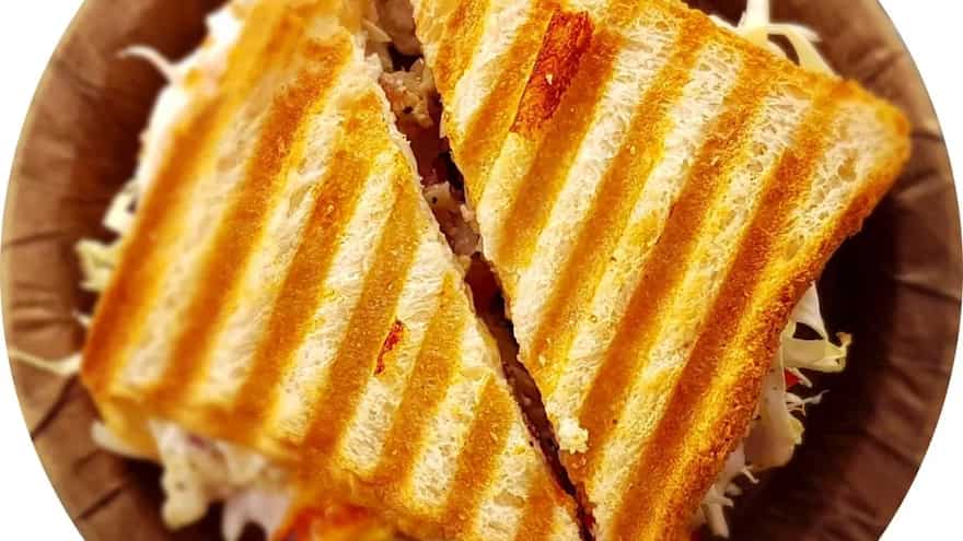 By just using a sandwich maker and a few basic ingredients already available, you can make a filling and scrumptious meal. Layer the buttered bread with some sliced tomatoes, onions, cheese, and green chutney before grilling it to golden perfection. Crispy from the outside and cheesy from inside, this sandwich feels like café comfort at home. A grilled veggie sandwich is great for a quick grab between classes or for a midnight craving.