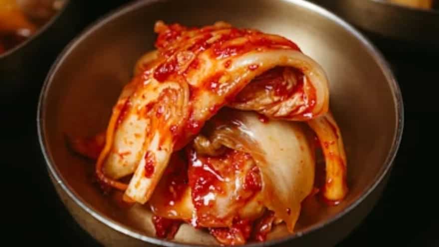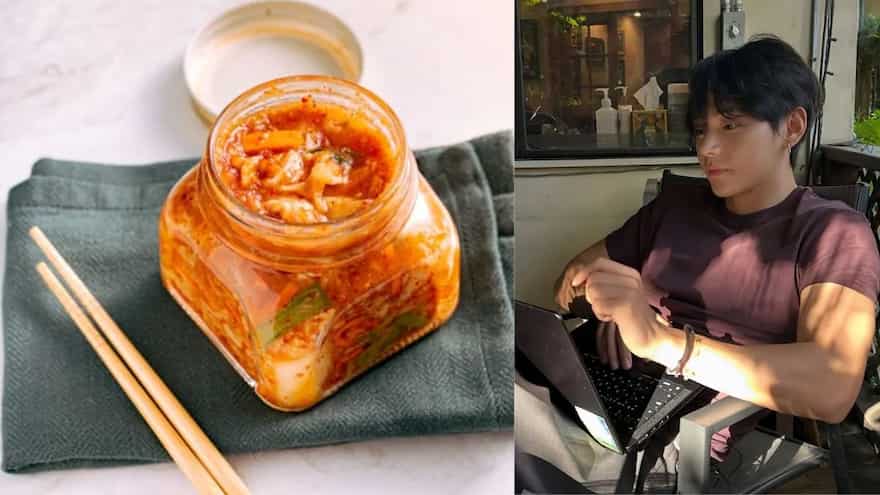 Kimchi is a side dish in Korean cuisine. Known for its spicy flavour and texture, kimchi is made from vegetables like napa cabbage, radish, and scallions that are salted, seasoned, and left to ferment. The fermentation process gives kimchi its sour taste. While there are over 200 varieties, the most common type is baechu kimchi, which uses napa cabbage as the main vegetable. Another favourite of BTS V is kimchi jjigae, a spicy kimchi stew. He has stated that he enjoys eating it with rice, particularly when he's feeling chilly. A filling and cosy dish that's perfect for a winter day is kimchi jjigae. Traditionally, kimchi jjigae is served with rice and many side dishes, including pickled vegetables and kimchi. It begins with Napa cabbage, which is salted and left to ferment for a period of time. This allows the cabbage leaves to soften and begin to break down. The cabbage is then mixed with garlic, ginger, scallions, chilli powder, fish sauce, and more. The mixture is then left to ferment again. Its sourness comes from the natural fermentation process. The red colouring comes from the chilli powder. And the flavour comes from the blend of spices used.