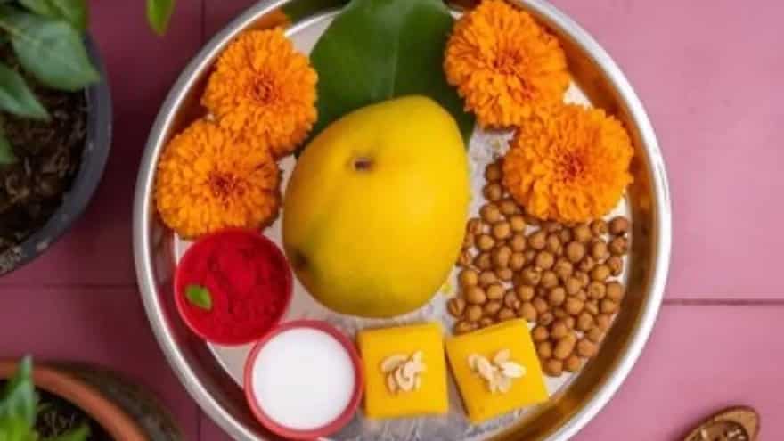 The most significant tradition of the fifth day revolves around the fruit of the day: the banana. Maa Skandamata is said to be extremely fond of bananas, and offering them as bhog is an essential part of the ritual. The banana is a symbol of fertility, prosperity, and the sweetness of life. Unlike many other fruits, every part of the banana plant is useful, reflecting the selfless nature of the Mother Goddess. When offering bananas at the altar, it is customary to present a full bunch if possible, symbolising abundance. In many South Indian traditions, the offering of a banana with a small piece of jaggery is considered highly auspicious. This simple act is believed to bring physical health and mental peace to the family. For those who wish to prepare something more elaborate, a banana-based dessert like a raw banana halwa or a simple mash with honey and nuts can be offered to the deity before being shared as prasad.