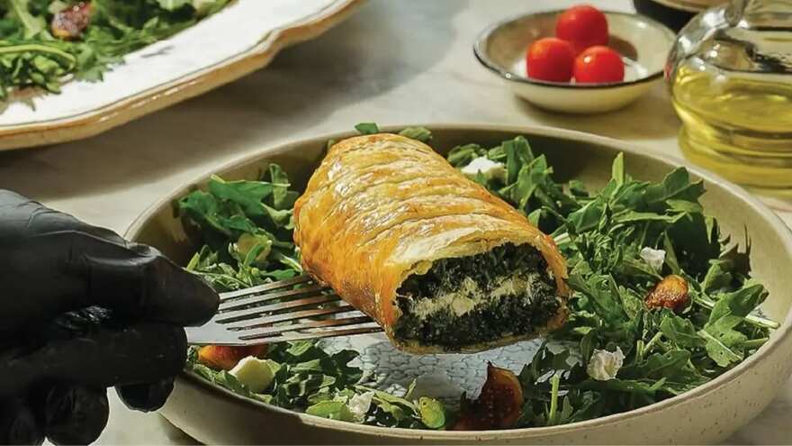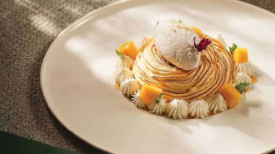 His words will echo in your head when you taste the Spinach and Feta Strudel, a refined dish comprising fresh fig, arugula, feta cheese, balsamic glaze, and charred scallion garlic aioli. The bitterness of spinach is complemented by creamy cheese, figs, and a sour and sweet glaze. Every bite is no short of a flavour bomb in your mouth. The crispy and flaky phyllo pastry is another highlight of this Greek-Indian fusion.