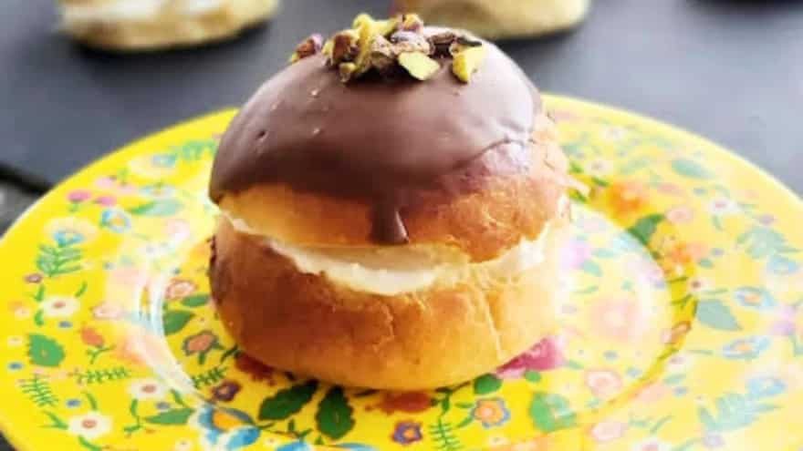 This variation adds a modern, colourful twist to the traditional bun by incorporating nutty and tart flavours. Prepare the choux shells as normal, ensuring they are well browned to support the weight of a slightly heavier filling. Create a pistachio cream by folding a smooth, high quality pistachio paste into a thick mascarpone and cream base. Pipe this generously into the hollow shells and press a single fresh raspberry into the centre for a sharp burst of acidity. For an extra professional touch, you can top each bun with a small disc of sweet craquelin dough before cooking. This results in a crackled, crunchy exterior that provides a sophisticated texture and an editorial appearance on a dessert platter.