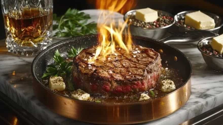 1. Brandy-Flambéed Pan-Seared Steak