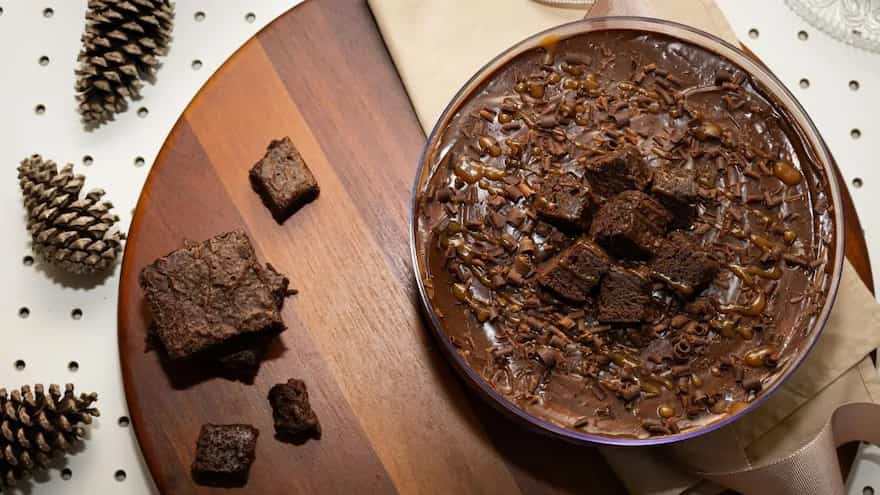 A regular brownie is designed to set completely, even when fudgy. Brownie pudding, on the other hand, is intentionally underbaked in the centre. The batter is looser, closer to a pudding or thick sauce, which allows it to stay molten after baking. It is also served hot or warm. Brownies improve as they cool and set, while brownie pudding is at its best straight from the oven. Cooling it too much changes the texture and takes away the whole point. This difference makes it ideal for winter holidays. Served warm, it feels generous, cosy, and a little dramatic in the best possible way.