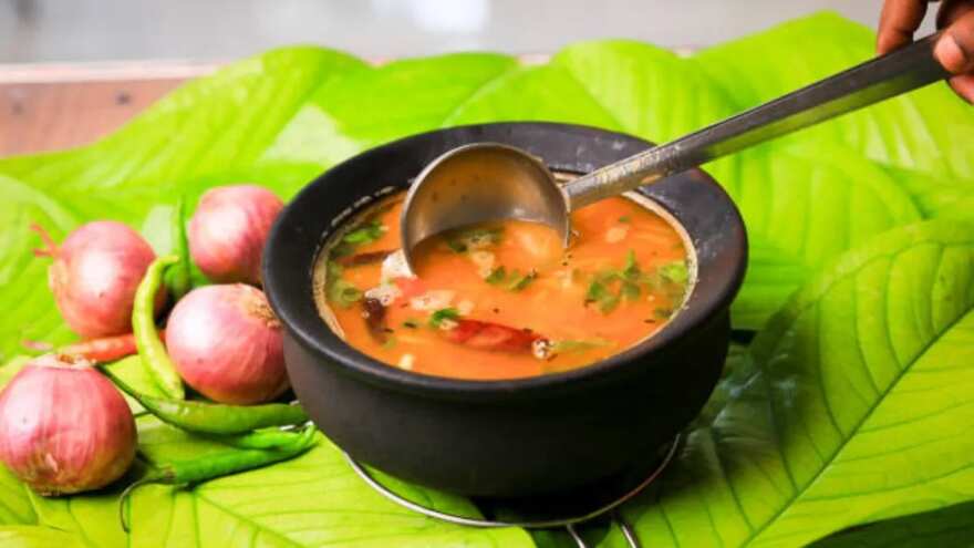 Rasam serves as a bridge between soup and curry in many South Indian homes. It is tangy, spicy, and often enjoyed with steamed rice or sipped directly from a cup. The pepper and tamarind base is ideal for cool evenings, helping the body feel lighter after heavier monsoon meals.