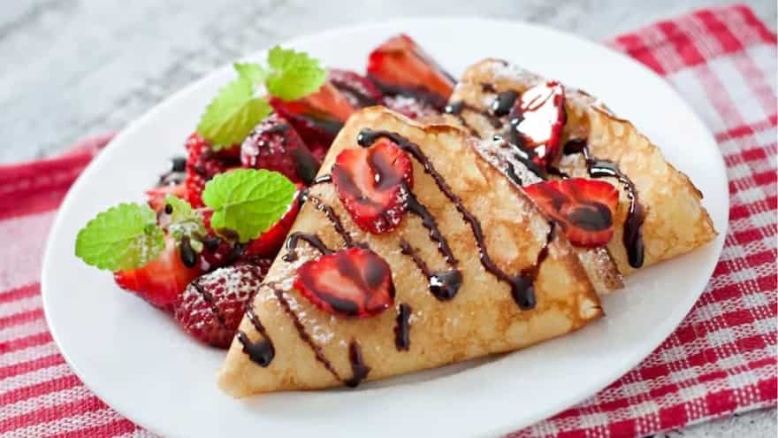 Crêpes are basically a character in themselves in Emily in Paris, which are enjoyed as street food during Emily’s wanderings. At home, thin crêpes filled with some melted chocolate and a hint of orange zest can recreate that moment completely. The texture is soft and delicate without being too heavy. Every bite feels playful and fun, like a Parisian dessert after dinner. Easy to make, extremely customisable as per preference, and having French charm, this dish is perfect for sweet-tooth moments.