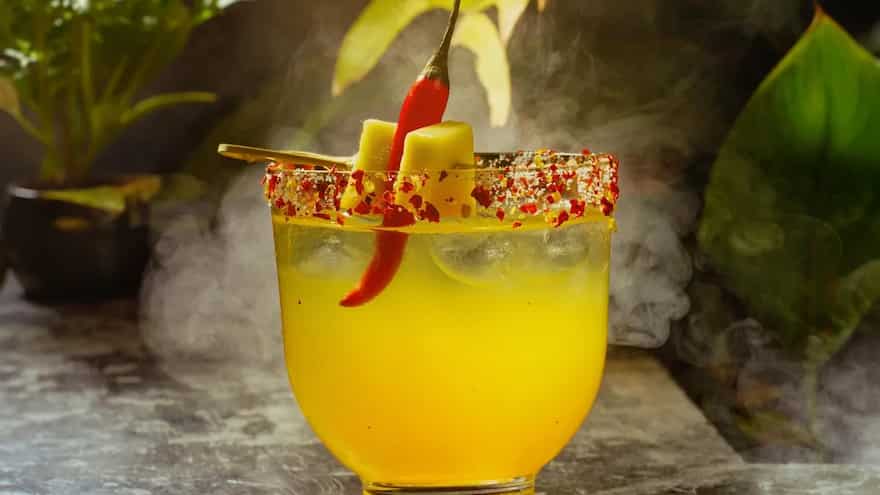 - Serve chilled as a tropical-spiced cocktail with a balance of sweet mango, citrus, and a subtle chilli kick.