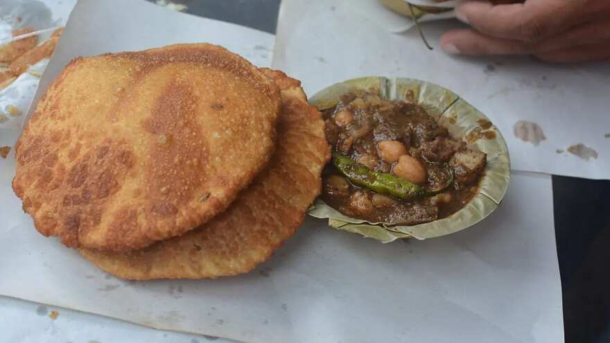 In Varanasi, every morning begins with plates of daal-filled kachoris served with a steaming bowl of rich, spicy potato curry. The crunchy, crispy exterior of kachori pairs beautifully with spicy aloo sabzi. Kachori sabzi sets the tone for the festive energy. One can find various local shops to enjoy these mouth-watering delicacies. This breakfast prepares the body and spirit to participate in the evening aartis and the vibrant diya-lit ganga ghats.