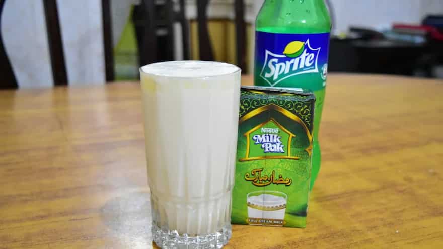 In Pakistan, Doodh soda has longstanding popularity across the Punjab provinces and major cities such as Karachi and Lahore. It is often served cold during hot weather, and in many Pakistani households and eateries it has become associated with Ramadan iftar tables, where its combination of creamy milk and fizzy soda helps with hydration after fasts. The beverage’s cultural resonance in Pakistan also stems from its ubiquity in roadside stalls, dhabas and informal eateries, where it is offered as an everyday drink rather than a specialty item. It existed alongside falooda, ice cream sodas, and fruit sherbets. These drinks were valued for their cooling effect and affordability, and references to milk-and-soda combinations appear in oral histories of Karachi’s café culture.