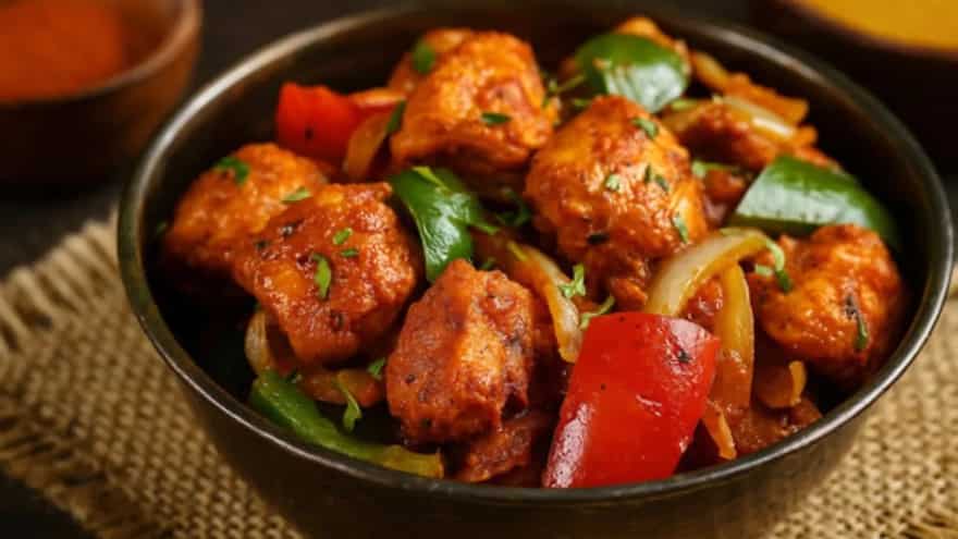 This version is a staple of restaurant menus. To achieve the best results at home, use boneless chicken strips. Start by marinating the chicken in turmeric, salt, and a little oil. In a heavy-bottomed pan, heat oil and sauté cumin seeds. Add a paste of ginger and garlic along with finely chopped onions, cooking until they turn a light golden brown. Increase the heat and add the chicken, searing it to lock in the juices. Add a mixture of cumin powder, coriander powder, and red chilli powder. Just as the chicken is cooked through, toss in large cubes of red and green bell peppers. Stir-fry on maximum heat for two minutes, finish with a splash of malt vinegar, and garnish with fresh coriander.