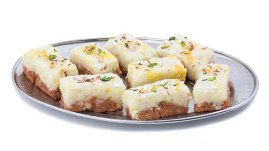 It is a classic sweet that can be prepared only by roasting some gram flour (besan), ghee, and sugar. Once the besan turns golden and emits its nutty aroma, you can add sugar syrup to it and spread the mixture to cool and set. Within just a few minutes, the barfi moulds into soft, fudgy square shaped that taste festive but light. The earthy sweetness of the roasted besan and the fragrance of ghee hold the essence of classic Diwali flavours. It is perfect for anyone who wants to enjoy homemade sweets without spending hours in the kitchen.