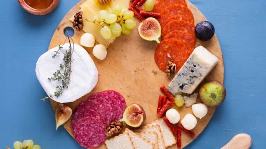This is a more balanced option that is visually appealing, fresh and full of colour. Use a mix of cheeses here, something soft like brie, firm like cheddar, and maybe a bit of processed cheese for easy pairing. Add fruits such as grapes, apple slices, or figs that are crunchy to bite. You can also add a handful of nuts, such as almonds or walnuts, for some extra crunch. Arrange everything in separate sections so that people can mix, match and pick as per preference. This board is light, easy to make, and works perfectly for both day and evening gatherings.