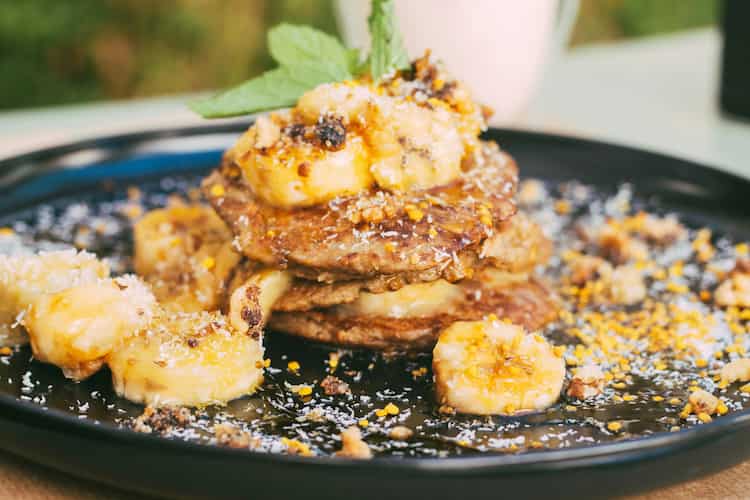 Make these gluten-free pancakes using almond flour, mashed bananas, oat or almond milk and cook them in a neutral oil of choice. Mash the banana slightly before adding it to the mixer grinder, along with the other ingredients and blend everything into a smooth, runny mixture. What’s also interesting about this mix is that it can be made in large batches and refrigerated ahead of time, to be used over the course of 3-4 days. Add coconut flakes for texture or frozen cranberries to introduce some colour. Since bananas have an inherent sweetness, you could skip the syrup element and simply add a scoop of peanut butter on top to go with them.