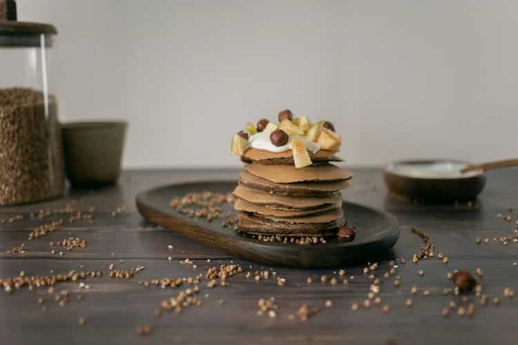 A great way to ensure swapping all-purpose flour is by using a mix of finger millet flour in combination with whole wheat flour as well as unbleached cocoa powder. Boost the chocolat-y factor of the pancake batter by adding some mini chocolate chips to the batter, once it has been blended. For an eggless version, blend the flour mixture with some yoghurt or kefir and oil, to give the pancakes a fluffy, airy crumb. Serve the pancakes with fresh strawberries, a drizzle of honey or maple syrup or even some homemade blueberry compote.