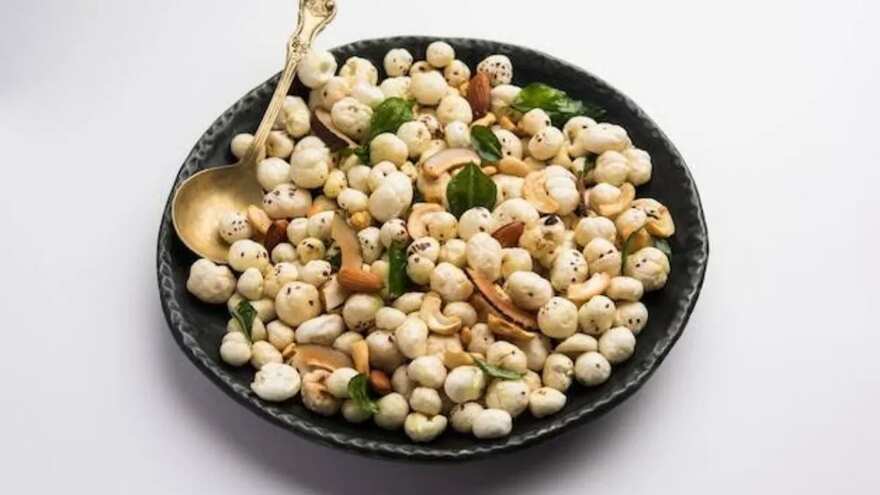 Makhana, also known as fox nuts, is widely consumed during fasts because it is light yet filling. In an OTG, makhana can be roasted with peanuts for a crisp and protein-rich snack. A light brushing of ghee and seasoning with rock salt and black pepper enhances the flavour. Roasting in the OTG gives a more even result than dry roasting on a pan. The mixture can be stored in an airtight jar for a few days, making it a convenient option for those observing longer fasts. This snack is also suitable for sharing with guests during the festival, as it is both festive and wholesome.