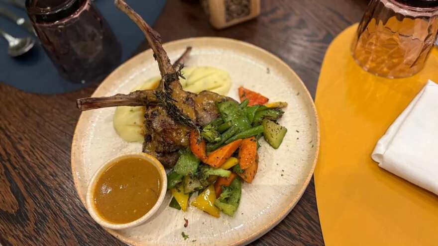 First came the New Zealand Lamb Chops, which were juicy and boldly spiced. Served with a side of steamed veggies and mashed potatoes, this dish again highlighted how well done the continental dishes on the menu are. Between bites of Beetroot Tikki with Cheese Centre—a playful vegetarian dish—and a Scampi Pizza that balanced delicate seafood with a well-charred crust, I appreciated just how much range this kitchen had.