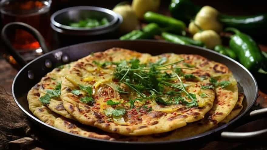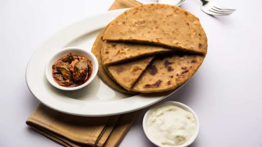 It is a multigrain Maharashtrian paratha that is prepared by mixing roasted flours such as jowar, bajra, rice, and besan with chopped onions, green chillies, coriander, and a blend of spices. This paratha has a nutty, earthy flavour as it is prepared by mixing various flours and has a slightly crispy texture. Thalipeeth paratha is cooked with a generous amount of ghee on a hot tawa and served with white butter or yoghurt. Not only tasty, but also packed with essential nutrients, making it a wholesome, protein-rich paratha ideal for those looking for a healthier version of parathas.