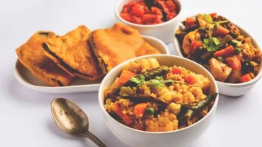 For a special feast offered to Goddess Durga, bhoger khichuri is prepared, consisting of moong dal, gobindobhog rice, and vegetables of your choice. It is considered the most sacred part of the Pujo spread. This year, you can bake a large amount in the OTG and serve it to your guests, who will be forced to guess the source of the mild smoky touch. After lightly roasting lentils and spices, combine them in a baking dish along with vegetables, rice, and water.