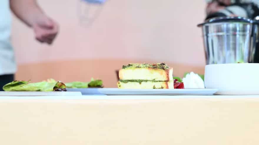 Chef Shaun Kenworthy began the show, turning traditional Indian fare into an art form. His debut dish: Crunchy, Crumb Baked Cottage Cheese with Asian Pesto. Golden paneer met a fragrant, chunky crown of coriander, ginger, and the surprise salinity of smoked Bandel cheese. The golden paneer steaks, topped with a rich, semi-chunky pesto, left the audience gasping in wonder.