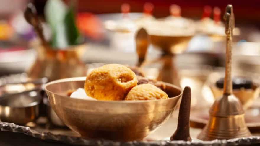 In the City of Joy, the bhog is not just an offering—it’s a story told through sweets, rice dishes, and savoury delights. Modaks are reinvented with nolen gur, laddus take the form of rosogollas, and the quintessential Bengali payesh finds its way onto Ganpati’s thali. Alongside, mishti pulao and aloor dom add warmth and comfort, making the bhog a balanced spread of sweetness and spice. In Kolkata, offering food to Ganpati is hospitality, where Bappa is treated as an honoured guest welcomed with love, creativity, and a generous touch of Bengal.