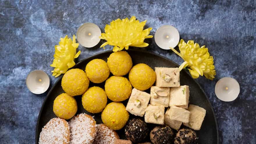 Laddus are another must-have for Ganesh Puja. In many pandals, you will find golden besan laddus, soft and aromatic with cardamom. But Kolkata adds its own style by preparing rosogolla laddus—small spongy rosogollas coated with khoya or dry fruits, presented as laddus to Bappa. These laddus symbolise abundance and the sweet rewards of faith.