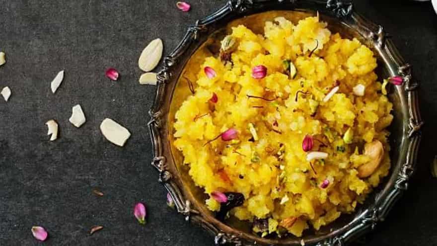 Sooji halwa, made from semolina, ghee, sugar, and dry fruits, is a humble yet deeply sacred part of the bhog. This dish is easy to prepare and is offered daily during the festival in many pandals. Its warm, comforting taste signifies simplicity and devotion, depicts unconditional love and sincerity that matter most in an offering.