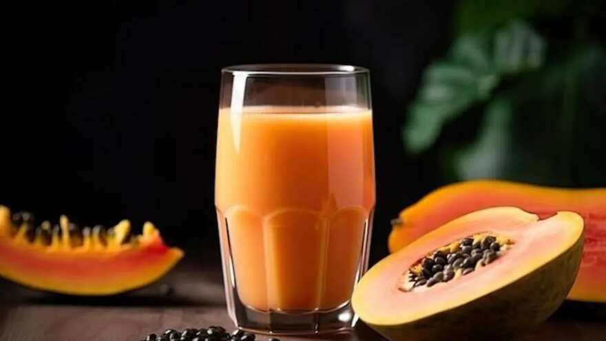 Papaya is light on the stomach and good for digestion. You can blend a cup of ripe papaya with half a cup of coconut milk to make a soft, creamy smoothie. Add a pinch of cardamom and stir in soaked sabja seeds just before drinking. Sabja seeds help with acidity and keep you full for longer.