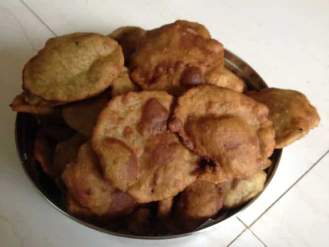 A semi-sweet, doughnut-like bread made using a mix of powdered lentils such as urad dal, chana dal, all-purpose flour and jaggery—the bhokache orias—also known as bhokyachi wadai, worias or waria, derives its name from the hole (bhoka in Marathi) in the centre. Considered to be a significant culinary feature at East Indian weddings, the deep-fried bread is known to be prepared in large batches for serving with green chutney, sorpotel, lonvas and pickles. Recipe variations are also known to add spices such as cumin and pepper for additional flavour.