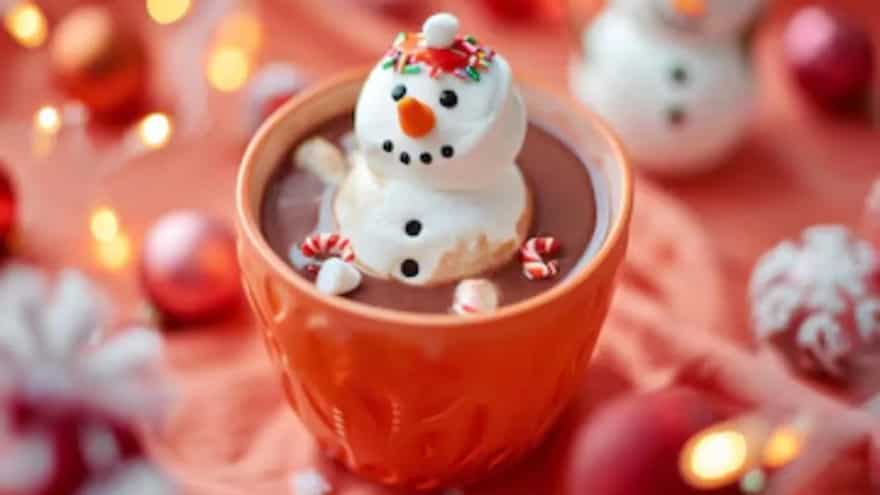 This recipe is less about cooking and more about creating cute characters. Melt some chocolate in a mug and let the kids dip the rim, stick mini marshmallows as the snowmen's heads, draw the faces using the melted chocolate, and add tiny arms. Warm some milk and pour it gently so the snowmen can float and slowly melt as you enjoy the dessert. Kids will love watching the snowy creation go away sip by sip. The taste is pure vacation comfort, which is creamy, rich with cocoa and a bit toasty from the marshmallows. These hot chocolate cups are for cosy evenings and to indulge in some fun activities with your younger ones.