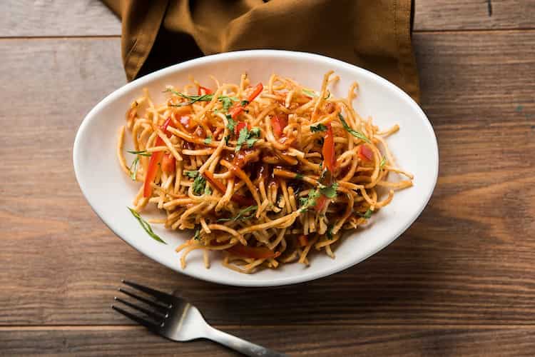The popular street food classic which is known for its textural diversity courtesy of the medley that is crunchy noodles, shredded vegetables and a fiery sauce, usually involves frying cooked noodles until they are browned and sure to not disintegrate when combined with the schezwan sauce. Oil the noodles lightly before strewing them in the air fryer to crisp up in batches and simply combine them with as many ingredients of choice to make the most delicious version of the beloved snack. Variate by swapping the chilli chutney with an umami-loaded miso-sambal mixture or even a lighter dressing made using fresh citrus a la orange chicken.