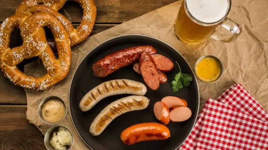 Bratwurst is a seasoned pork sausage that varies from region to region, but at Christmas markets it is almost always grilled over an open flame. The sausage is served hot in a small bread roll, making it easy to eat while walking. Nuremberg’s Rostbratwurst is short, thin, and lightly spiced, while Thuringian bratwurst is longer and has a more herbal flavour. For someone unfamiliar with German sausages, the appeal comes from the smoky char on the outside and the warm, savoury filling that pairs well with mustard and fresh bread.