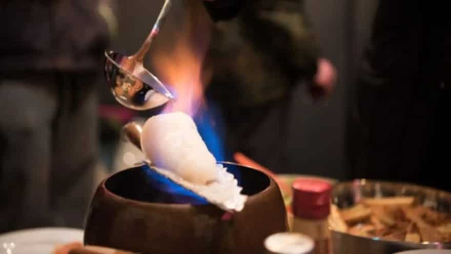 Feuerzangenbowle is a dramatic festive drink made by heating spiced wine in a pot and placing a rum-soaked sugar cone on a metal grate above it. Once the sugar is set alight, it melts and drips into the wine, giving the drink a deep caramel flavour. It is served hot and carries both sweetness and warmth. For a newcomer, the experience is as memorable as the taste itself, since the preparation involves a bright flame that draws people to the stall. The drink is richer than glühwein and has a smooth finish from the caramelised sugar.
