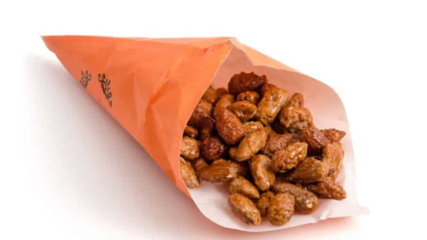 Gebrannte Mandeln are whole almonds cooked in a copper pan with sugar and a touch of cinnamon until a crisp, glossy coating forms around each nut. Vendors stir the mixture continuously, and the warm caramel scent drifts through the market. The almonds are served in paper cones and eaten warm. For first-time visitors, they taste sweet, crunchy, and slightly toasty, offering a simple but addictive snack that can be enjoyed while browsing the stalls.