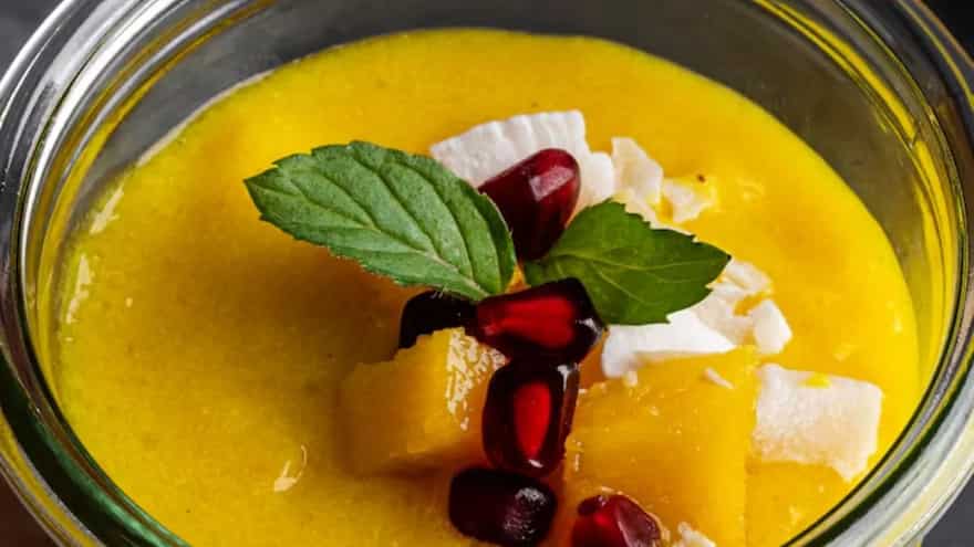 Gazpacho may not be the first thing that comes to your mind, but adding mango makes it surprisingly familiar. Gazpacho is basically a cold soup that is made of raw blended vegetables. This chilled soup blends well with mango, tomatoes, a bit of garlic, and a little splash of vinegar, making a drink that feels tangy, a bit sweet, and also very cooling. It’s light, feels smooth on the palate, and is ideal for days when you do not feel like eating a proper dinner or a heavy meal. The mango lightens the sharpness of the tomatoes, making the soup feel more balanced and approachable. Mango gazpacho feels different, but in a way that you will enjoy.