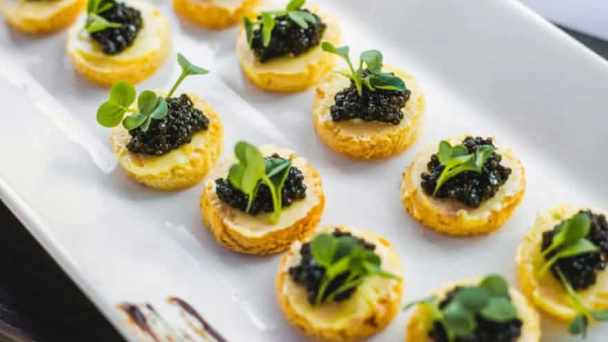 Small, evenly cut potato rounds form a dependable base for caviar because they offer a mild flavour that lets the roe stand out. Steaming the rounds keeps the texture smooth and prevents the surface from drying, which helps the topping settle neatly. A small spoon of crème fraîche adds gentle acidity, and the caviar brings a briny lift that feels right for a festive evening. A few snipped chives or microgreens finish the bite without overshadowing the main ingredient. These portions introduce a sense of occasion while staying grounded in familiar pantry staples.
