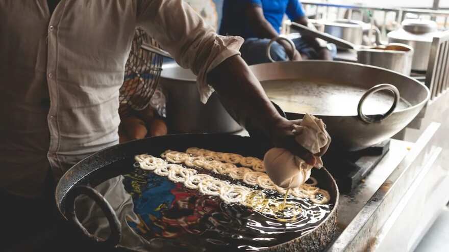 - Fafda & Jalebi – On festival mornings, especially Sundays, locals gather early for fafda and jalebi, a pairing of crisp chickpea flour snacks with sticky spirals of syrup-drenched sweetness.