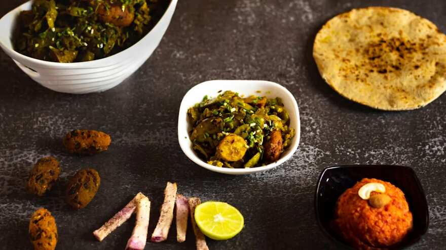 - Undhiyu – A traditional winter dish, undhiyu is made using seasonal vegetables cooked slowly with spices in earthen pots, and is often served during family gatherings or weddings when people take their time with lunch.