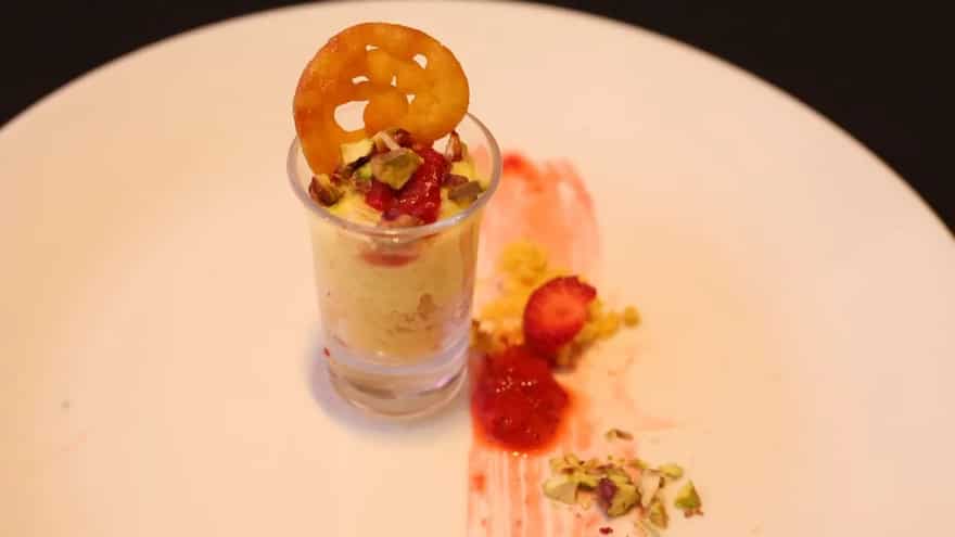 Thinking on her feet, Astha Agarwal went ahead to recreate Delhi’s favourite dessert, rabri jalebi. Reinventing the traditional Indian sweet, Astha made a parfait. With the base layer as cupcakes made with besan, mouth-melting rabri kheer as the second layer, strawberry compote as the third, and finally a crispy jalebi made in just 45 minutes. Along with the parfait, she completed the plate with the compote, sliced strawberries, and chopped nuts.