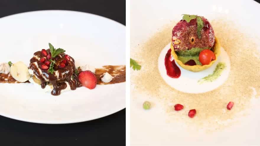 The grand finale kicked off with a mystery challenge. Each home chef was given a secret ingredient, and this time it was Aashirvaad Select Sharbati Atta. Picking the atta as the hero ingredient, Vinisha Thakur made a tart, filled it with a paneer and chickpea-based tikki, and paired it with a paneer-based sauce. Astha Agarwal made a beetroot baked and served it in a whole wheat tart paired with a kiwi and pomegranate chutney. Adding something sweet to the table, Neha Gupta made a banoffee chocolate caramel chaat garnished with hung curd and sliced strawberries.