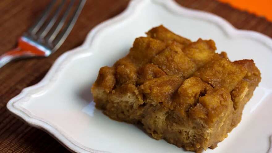 Pumpkin bread pudding is incredibly simple to make, and since the pumpkin already adds a creamy texture to the custard, less milk and eggs are needed than in a traditional bread pudding. This can be made with any type of bread. However, avoid using sliced sandwich bread! For this, you will need bread from the bakery. You can use a couple of teaspoons of apple pie spice or pumpkin pie spice if you don't have all the individual spices on hand. Give everything at least half an hour to rest. This is a great dish to prepare in advance and keep in the refrigerator before baking, since the bread will absorb the liquid more the longer it is left to rest.