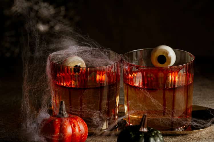Not to mention, serving a blood-red cocktail with floating eyeballs or a witch's brew topped with gummy worms. These little touches bring a creepy and fun atmosphere around your drinks.
